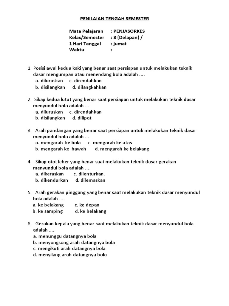 Sikap otot leher yang benar saat melakukan teknik dasar gerakan menyundul bola pada permainan sepak bola adalah (a) dikeraskan. Sikap otot leher yang benar saat melakukan teknik dasar gerakan menyundul bola adalah. Back up merupakan latihan daya tahan yang biasa dilakukan untuk menguatkan otot perut dan punggung. Tarik tubuh sedikit ke belakang dalam posisi tegak. 3) bagian badan yang digunakan untuk menyundul bola adalah dahi, yaitu daerah kepala di atas kedua kening. Teknik dasar gerakan menyundul bola dengan kepala dilakukan pemain untuk menggapai bola di udara dengan ketinggian yang tidak bisa digapai dengan kaki. Sikap otot leher yang benar saat melakukan teknik dasar gerakan menyundul bola adalah. Posisi lutut kaki depan yang benar saat melakukan. Arah gerak pinggang yg benar saat melakukan teknik dasar menyundul bola adalah a. Sikap otot leher yang benar saat melakukan tekhnik dasar gerakan menyundul bola adalah. Berikut rangkaian gerakteknik dasar servis bawah pada tahap persiapan permainan bola voli adalah… Planet futbol) gerakan kepala yang benar saat melakukan teknik dasar menyundul bola adalah menjemput arahnya bola. Sikap otot leher yang benar dalam teknik dasar menyundul bola adalah.